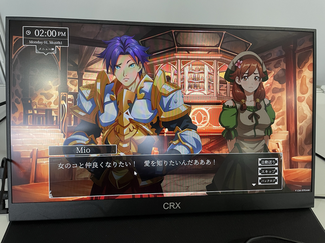 他にも、豪快な性格の父親や、皮肉を言い合うような親友ポジションの騎士ヒューなど、懐かしい雰囲気が随所に感じられます。今回の試遊では触れられなかったものの、ヒューを手助けして戦うRPG風になる場面もあるとか……。とんと今では少なくなった「昔ながらの美少女ゲーム」が好きな人は要注目な1作です。