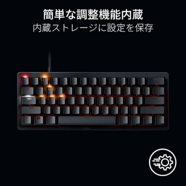 (*1) Razer Synapse を起動しない状態での、ラピッドトリガー感度やアクチュエーション距離の調整は、全キーを一括に変更にのみ対応しています。各キーごとの設定は、Razer Synapse 上で設定が必要になります。なおオンボード・プロファイルに保存後は、Razer Synapse で設定したキー毎の設定が、Razer Synapse の起動なしで使用できます。