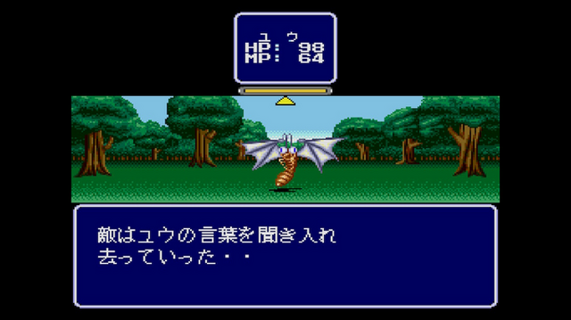 後のシリーズにもつながる、過去作品のキャラも多く登場するストーリーを楽しめる本作。テンポの良さや登場キャラクターの魅力はもちろん、ボス戦で主題歌が流れるなど、演出の良さは抜群です。十字キーを斜めに入れると縦横にかくかく移動できる感じもなんとなく懐かしいですね。
