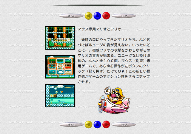 『マリオとワリオ』は妖精「ワンダ」をマウスで操作してマリオたちを誘導していくアクションパズルで、なんとステージ数は100というかなりのボリュームがあるゲームです。そのどれもが出来の良いパズルのため、当時遊んだユーザーからは期待する声が多く寄せられています。