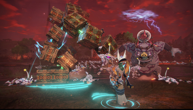 ブロックゴーレムとのシンクストライクを発動することが可能になります。その強力な回転攻撃は、ザコを蹴散らし、強敵のウィークポイントゲージを削ります。