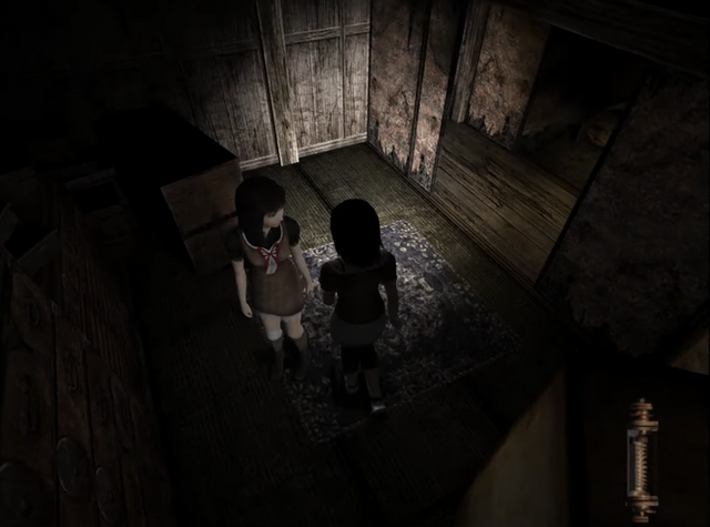 当時のグラフィック特有の、斜め線が階段状に見えるジャギーや、テクスチャのノイズなどが独特の「ザラついた質感」を生んでおり、民家の古びた壁、汚れきった畳における埃っぽさやカビ臭さといった嫌悪感を、プレイヤーに連想させていました。
